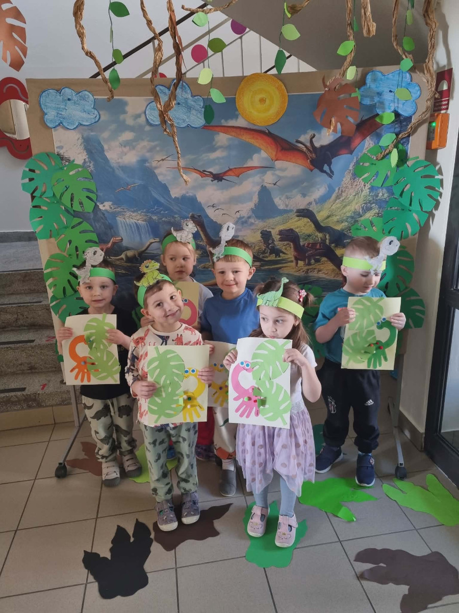 Dzień Dinozaura to wyjątkowe święto, które wzbudza ogromne zainteresowanie wśród dzieci. Prehistoryczne gady fascynują najmłodszych swoim wyglądem, wielkością oraz tajemniczym światem sprzed milionów lat. Z tej okazji w naszym przedszkolu zorganizowano zajęcia pełne ciekawostek, zabawy i kreatywnych aktywności. Podczas spotkania dzieci miały okazję poznać różne gatunki dinozaurów oraz dowiedzieć się, jak wyglądało życie na Ziemi w czasach prehistorycznych. Przedszkolaki oglądały ilustracje i książki o dinozaurach, a także dzieliły się swoją wiedzą i opowiadały o ulubionych dinozaurach. Nie zabrakło również zabaw ruchowych oraz edukacyjnych. Dzieci brały udział w „dinozaurowych” zadaniach, naśladowały ruchy dinozaurów, a także poszukiwały ukrytych „skamieniałości”. Dzięki temu mogły poczuć się jak prawdziwi mali odkrywcy.