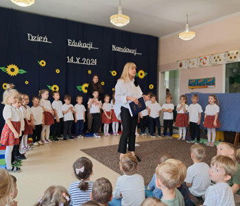 14 października obchodziliśmy w naszym przedszkolu Dzień Edukacji Narodowej. Grupa Ufoludki uroczyście podziękowała wszystkim pracownikom za trud codziennej pracy.