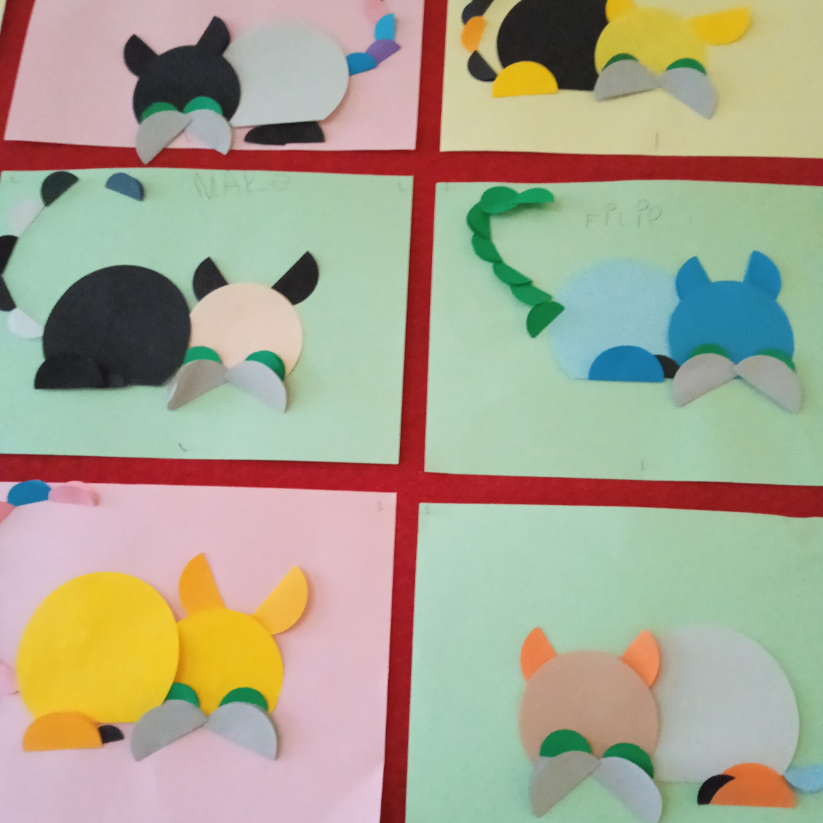 W dniu 28 listopada dzieci z grupy „Plastelinki” w ramach porannego koła origami, składała wzór kota polującego na myszkę. Przeliczaliśmy ilość kół, dobieraliśmy wielkość, układaliśmy złożone koła bez kleju i ostatecznie przykleiliśmy wszystkie elemnty na kartke. Oto nasze efekty.