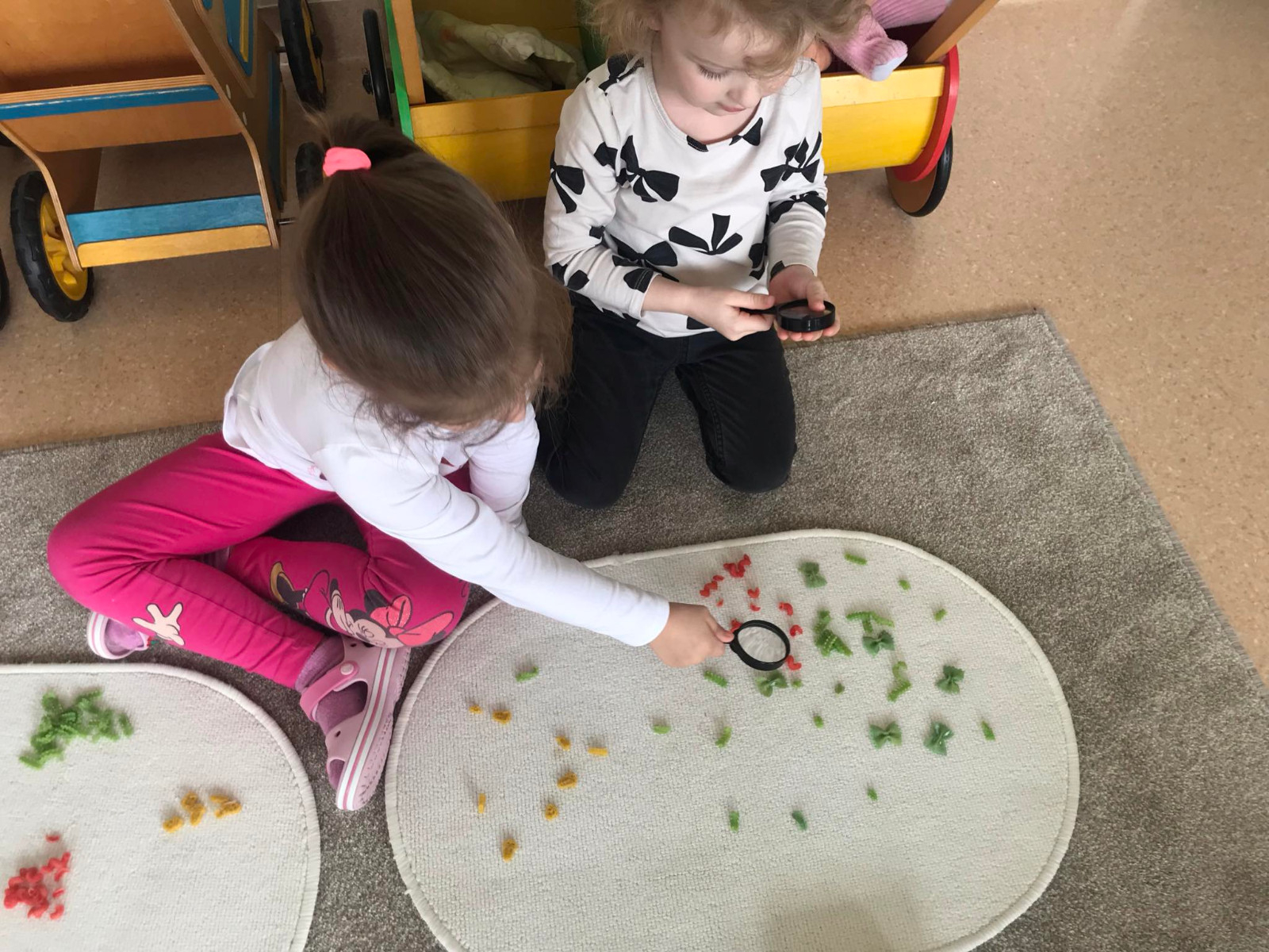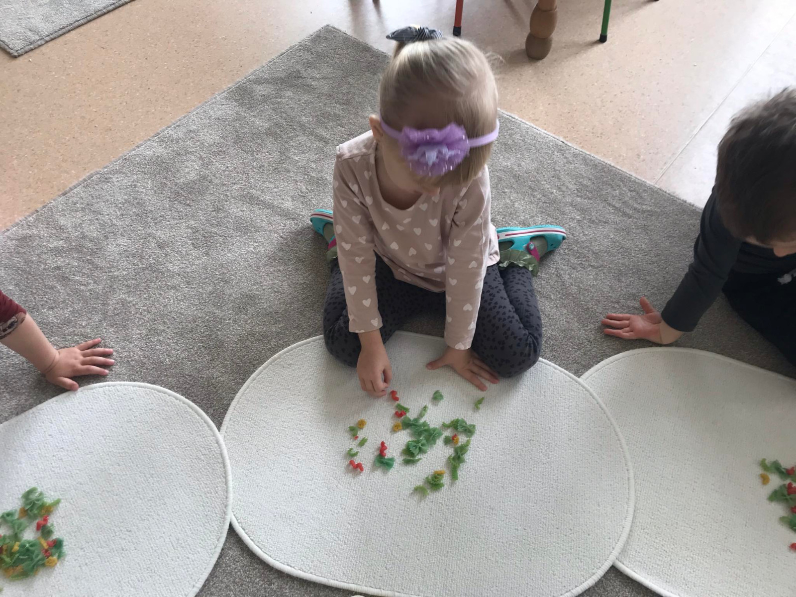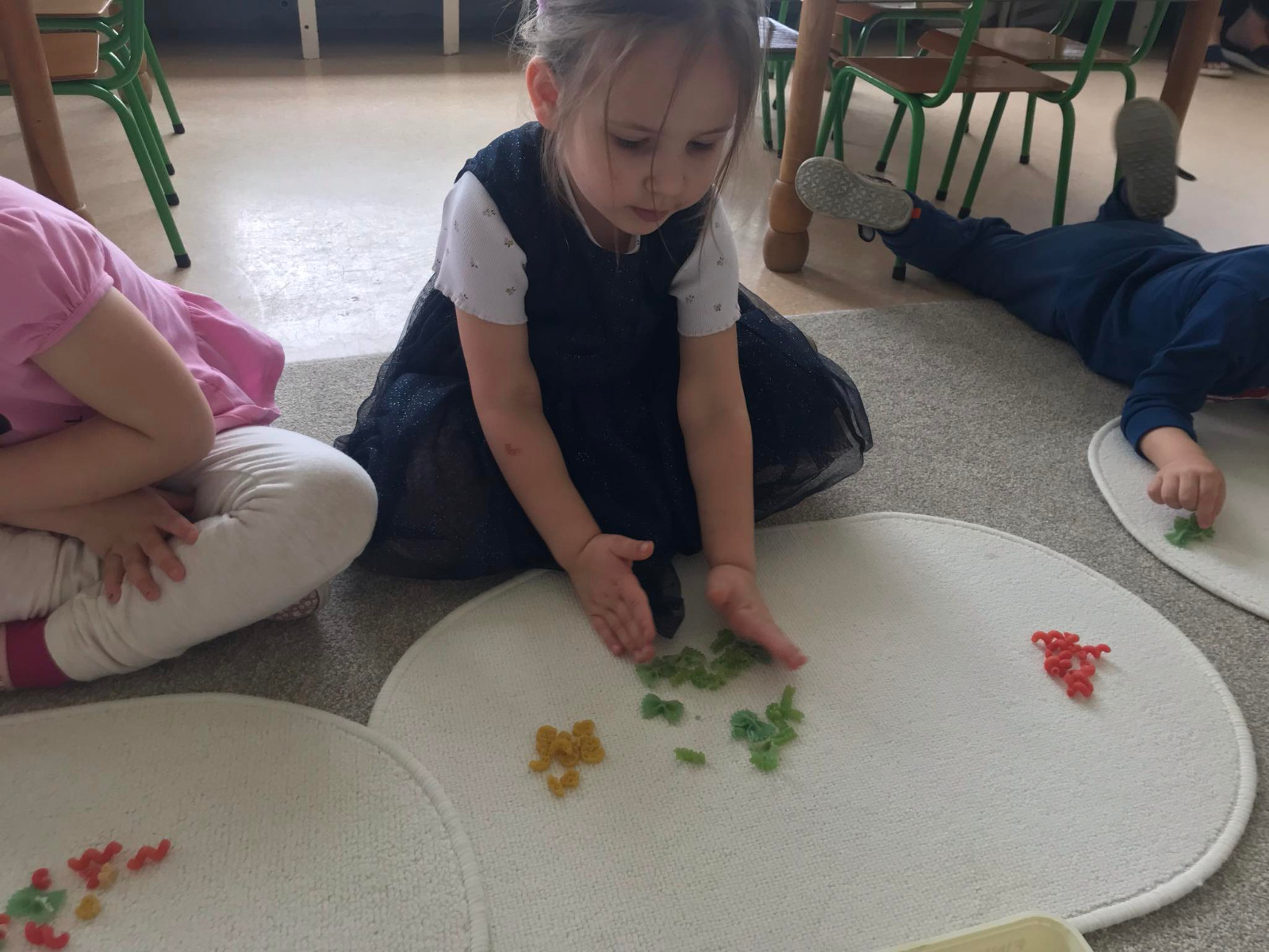 Od kwietnia b.r w naszym przedszkolu realizowany jest grant oświatowy mający na celu stymulowanie zmysłów i sprawność ruchową dzieci. W grupie „Krasnale” organizujemy zabawy sensoryczne wspomagające i doskonalące małą i dużą motorykę oraz pobudzające zmysły. „Kolorowy makaron” to zabawa rozwijająca zmysł wzroku i dotyku. Było to nie lada wyzwanie. Każde dziecko otrzymało pojemniczek z 3 rodzajami i kolorami makaronu. Zadaniem dzieci było klasyfikowanie, przekładanie, przeliczanie, nazywanie kolorów, układanie według poleceń nauczyciela.