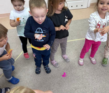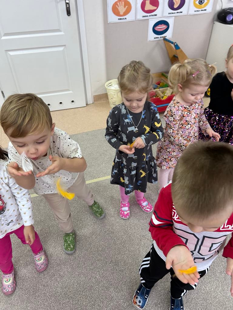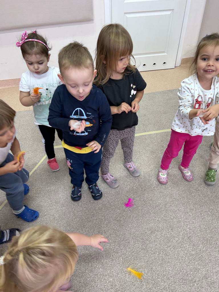 PODCZAS ĆWICZEŃ ODDECHOWYCH SAMODZIELNIE WYWOŁAŁY WIATR DMUCHAJĄC NA PIÓRKA.