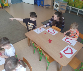 „Bukiet, prezent i cukierki to rodziców dzień jest wielki” czyli moja mama i mój tata ten tydzień był poświęcony osobom najbliższym dzieciom czyli rodzicom. Podczas zajęć przedszkolaki były bardzo aktywne i chętnie wypowiadały się na temat swoich najbliższych, wspólnego spędzania czasu z rodzicami i rodzeństwem. Dzieci odgadywały zagadki o członkach rodziny i określały stopień pokrewieństwa. Kształtowały także umiejętność globalnego czytania wyrazów: mama, tata, ja. Najmłodsi mieli wiele do powiedzenia na temat swoich najbliższych, a opowiadaniom towarzyszyły pozytywne emocje i uśmiech na ich buźkach. Cały czas przygotowujemy się do występu dla mamy i taty z okazji ich święta: ćwiczymy, utrwalamy, przygotowujemy niespodzianki, aby było pięknie.