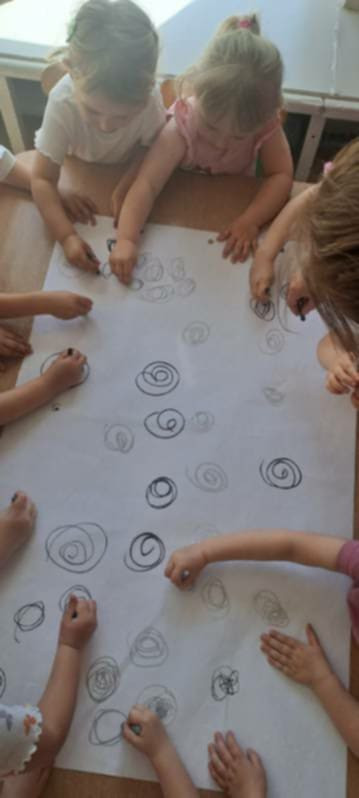 poznaliśmy zwierzęta, które tam mieszkają, „urządzaliśmy” operę w kurniku w rytm piosenki, zbieraliśmy jajka doskonaląc zasady gry typu: „ściganka” i jak zawsze nasze ręcę wykonały prace plastyczne, które udekorowały naszą szatnię.
