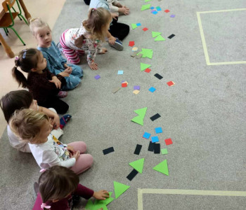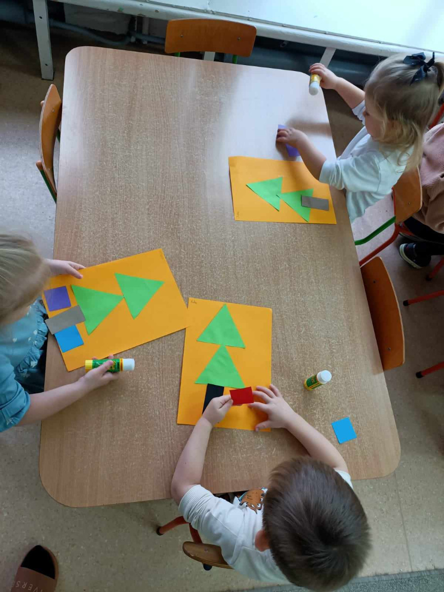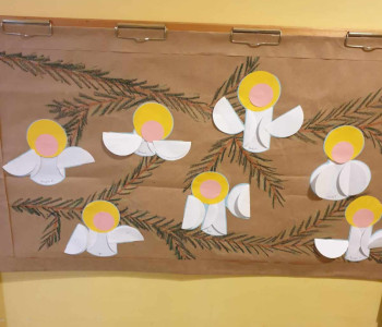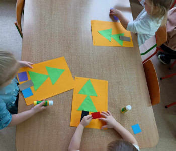 Umiemy śpiewać pastorałkę „Aniołek maleńki jak wróbelek” i zrobić jego sylwetkę z kół origami oraz składać choinkę z figur geometrycznych i narysować prezeny według instrukcji wierszyka.