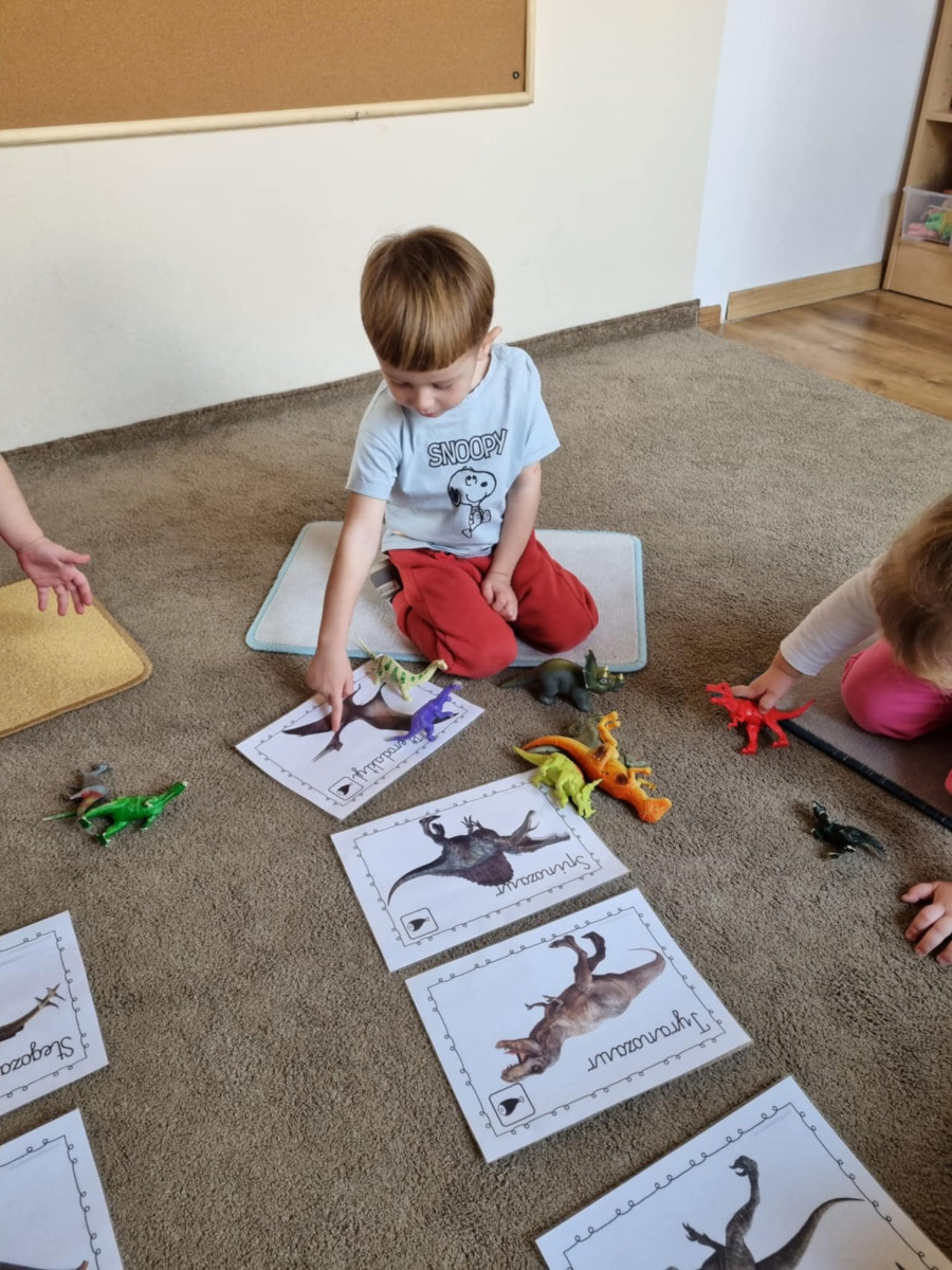 Przybliżanie wymarłych gadów., oglądanie filmu edukacyjnego, udział w zabawach tematycznych-wykonanie pracy plastycznej.