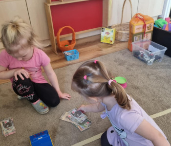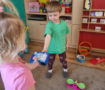 Tuptusie podczas spaceru zrobiły zakupy w pobliskim sklepie i zapoznały się z zawodem sprzedawcy. Przyswoiły zasady zachowania się w miejscach publicznych. Wykorzystały zdobytą wiedzę do wspólnej zabawy w sklep.