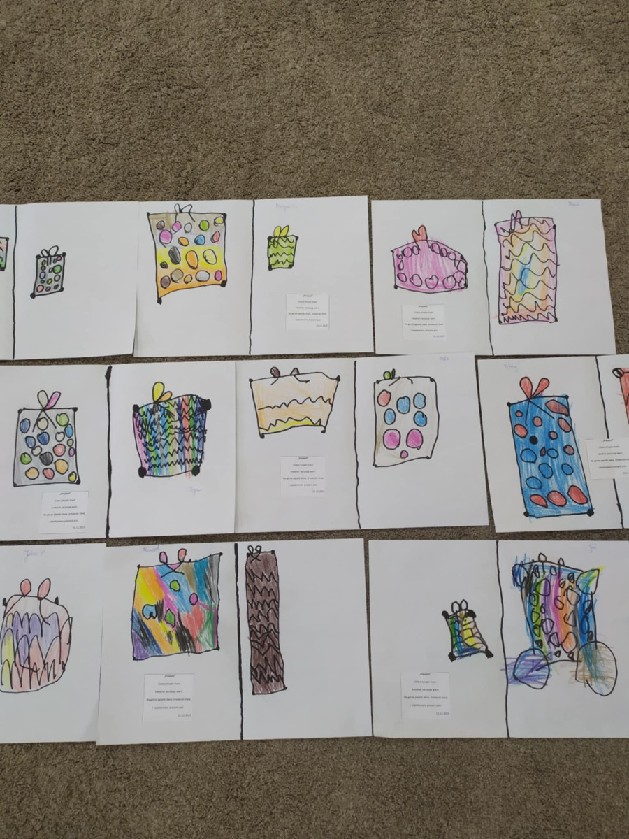 - a te figury z wierszykami przekształcamy w prezenty i choinki.
