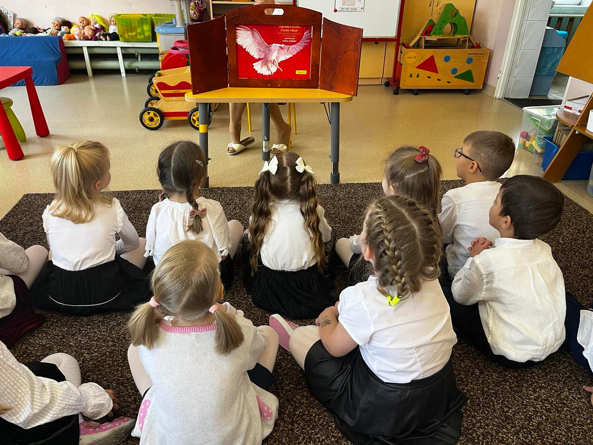 8 listopada w naszym przedszkolu po raz kolejny wzięliśmy udział w akcji „Do hymnu”. Z tej okazji dzieci z wszystkich grup oraz pracownicy przedszkola odświętnie ubrani zebrali się, aby uroczyście zaśpiewać hymn państwowy. W przedszkolu od najmłodszych lat uczymy dzieci patriotyzmu, przywiązania do swojej Ojczyzny, do ziemi rodzinnej, wpajamy szacunek dla polskich symboli.