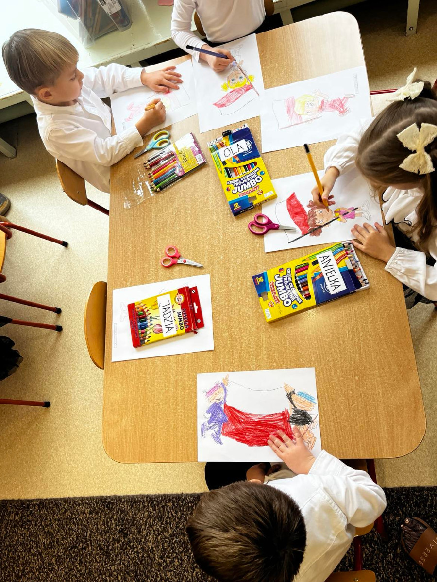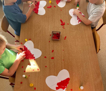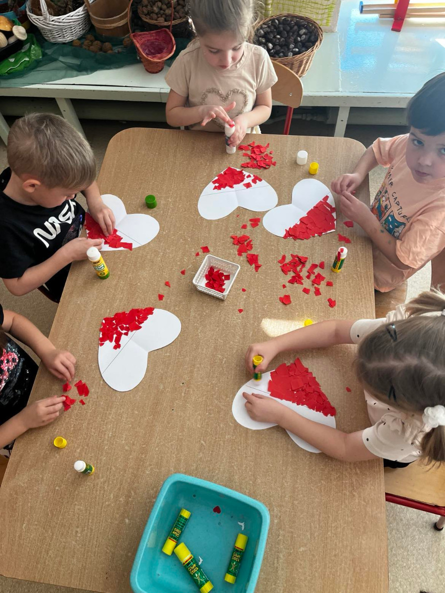 Przez kolejne dni w związku ze zbliżającym się Świętem Niepodległości utrwalaliśmy nasze symbole narodowe: godło, flagę i hymn. Wysłuchaliśmy opowiadania „Prezent dla Ojczyzny” oraz „Moja mała Ojczyzna”. Zapoznaliśmy się z wierszem „Katechizm polskiego dziecka” , oglądaliśmy film edukacyjny o symbolach narodowych i wykonaliśmy prace plastyczną biało – czerwone serce.