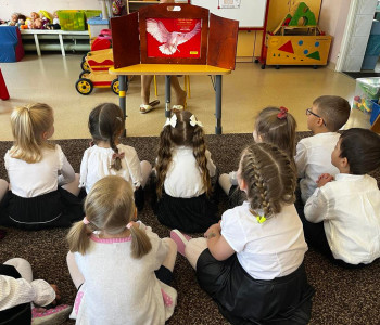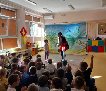 Ten tydzień również rozpoczęliśmy teatrzykiem o przyjaźni i tolerancji pt. „Na końcu świata przygody Misia i Kacpra Pirata” w wykonaniu aktorów teatru MASKA.