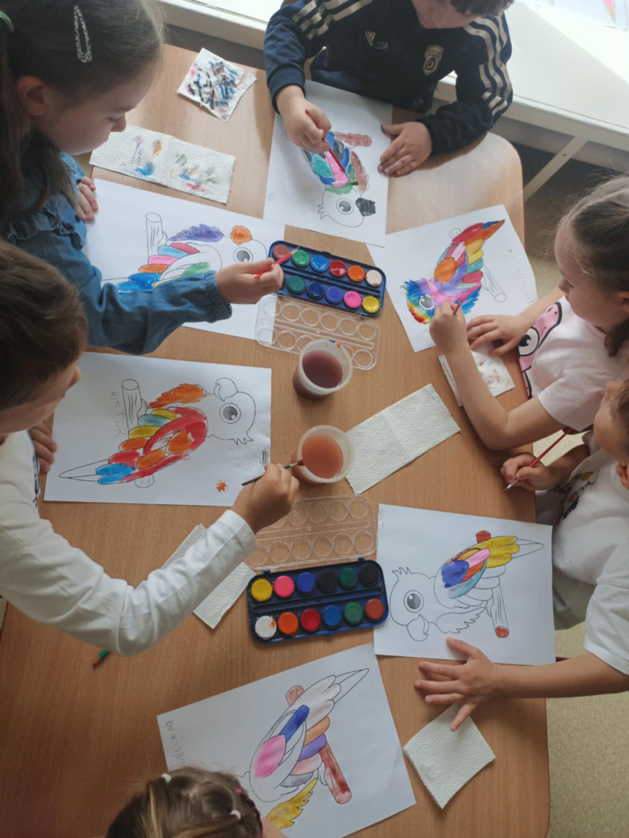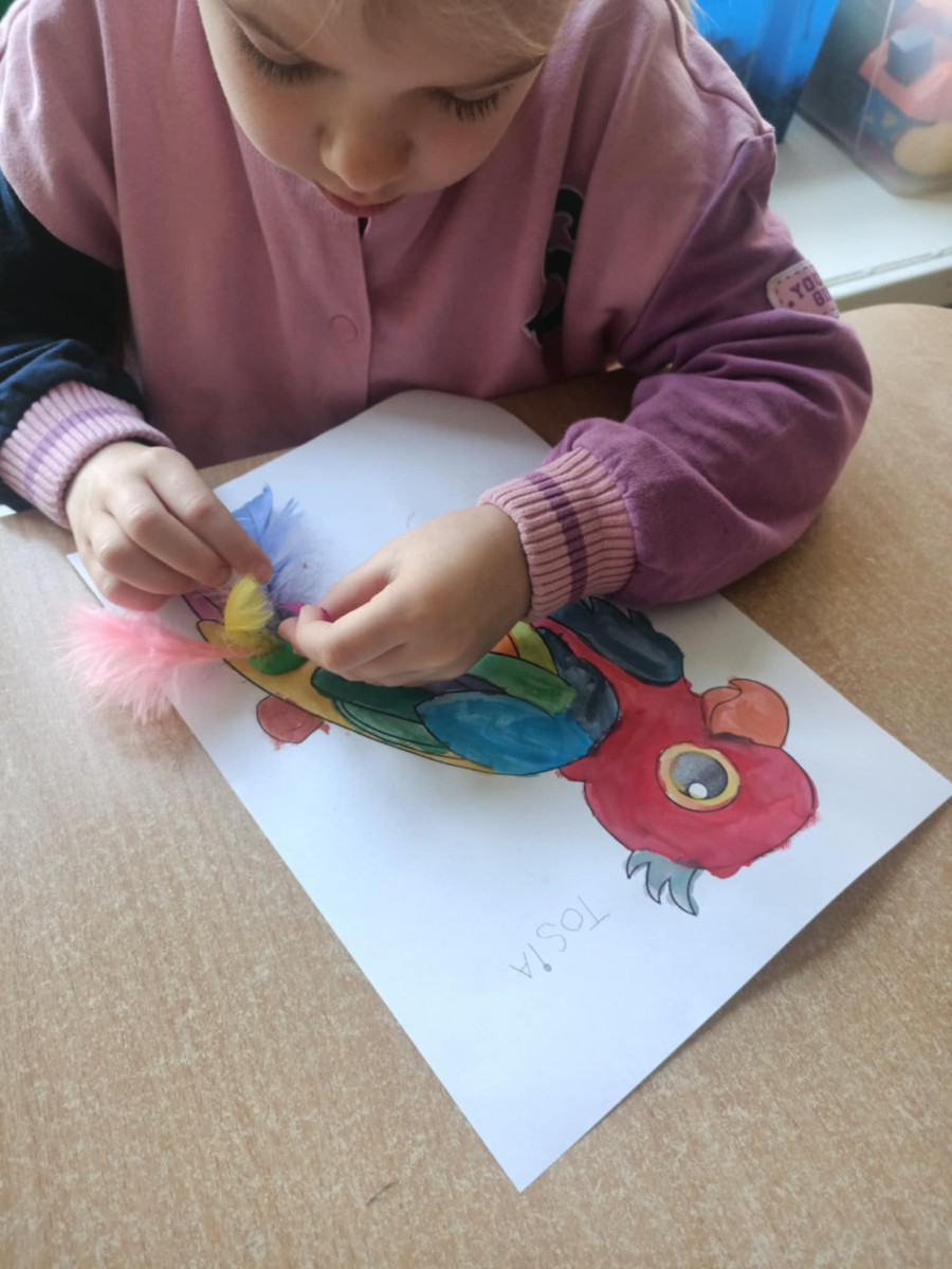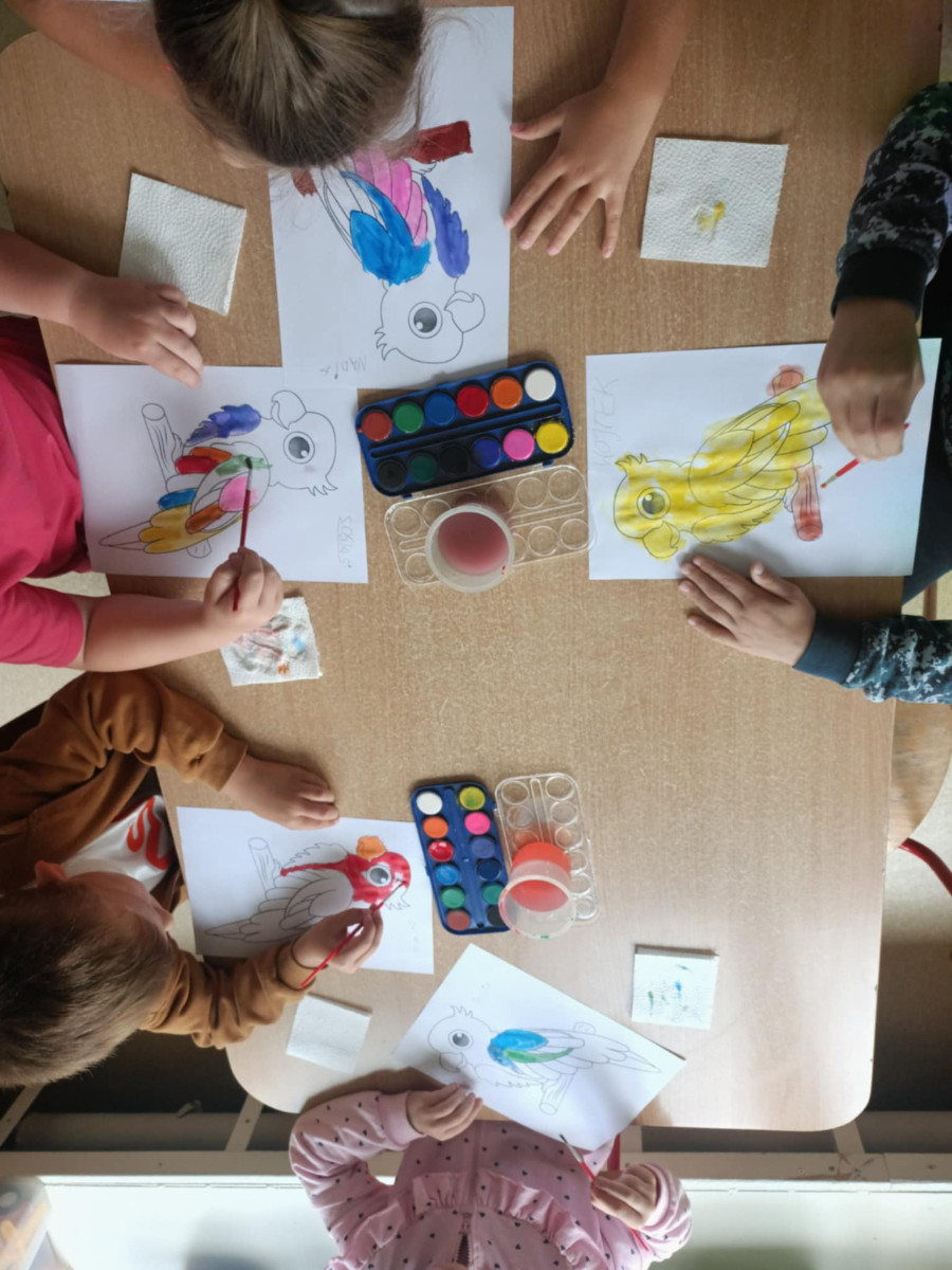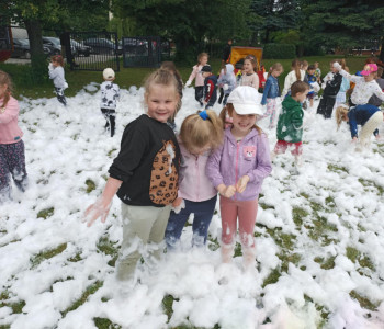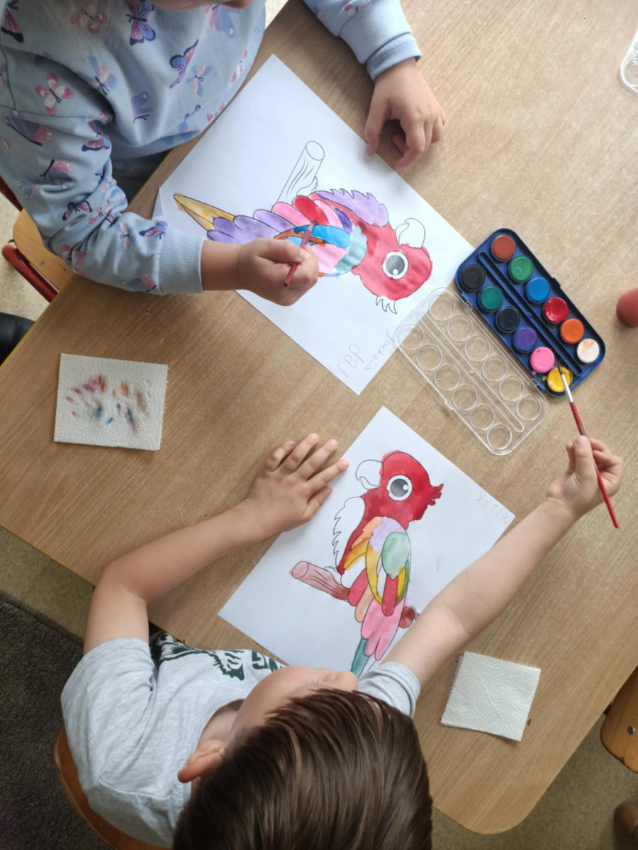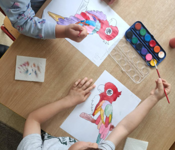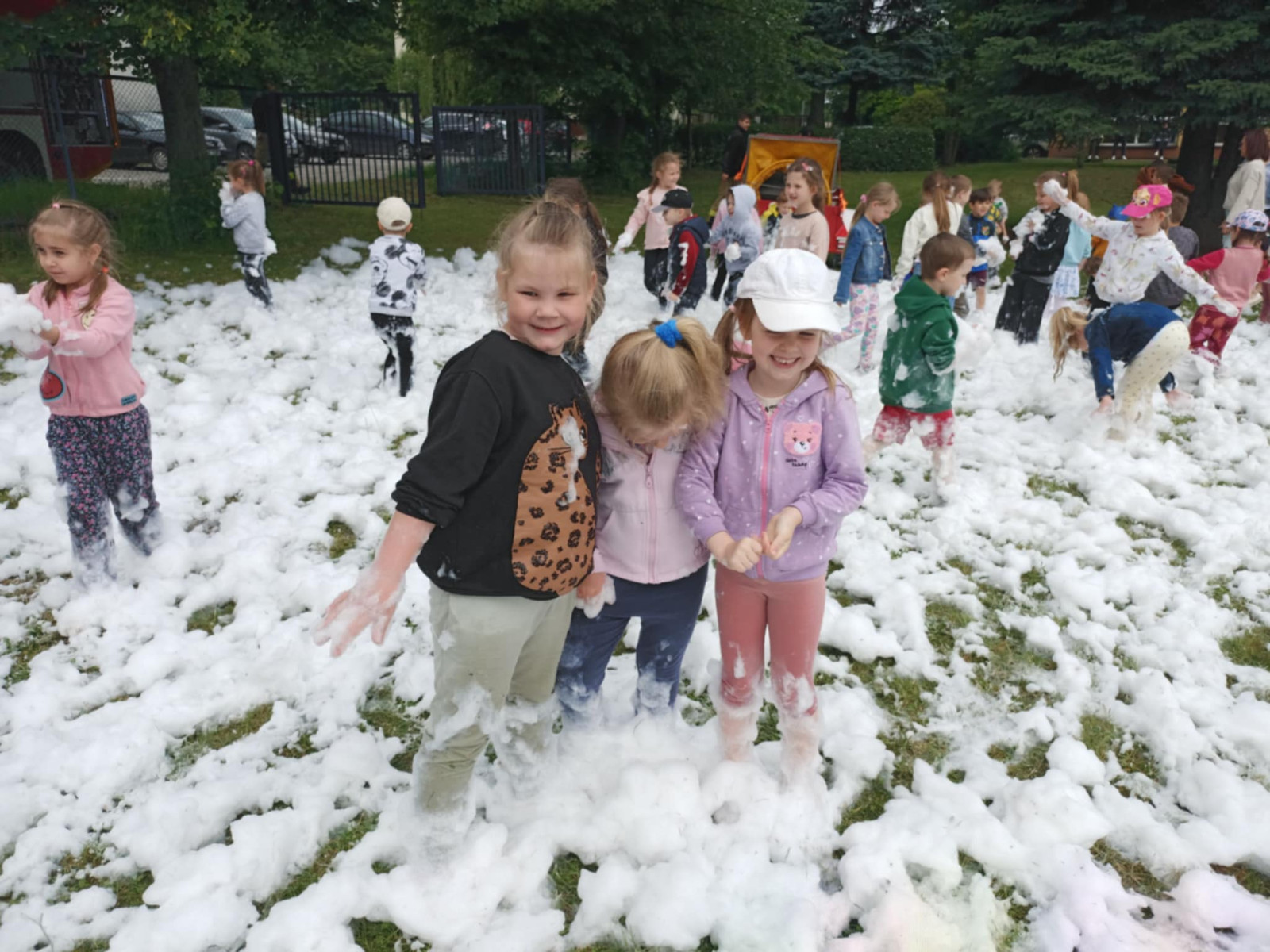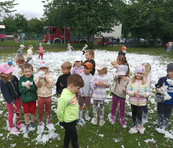 Ufoludki już wiedzą, co oznaczają „zwierzęta egzotyczne” potrafią je wskazać, rozpoznać na podstawie dźwięków, a także naśladować. Za pomocą farb akwarelowych Ufoludki stworzyły kolorowe papugi, dbając o każdy szczegół swojego dzieła. Czy ktoś powiedział, że to już koniec niespodzianek? Otóż nie! Do naszego przedszkola przyjechali strażacy i zapewnili przedszkolakom wspaniałą, niezapomnianą zabawę w pianie!