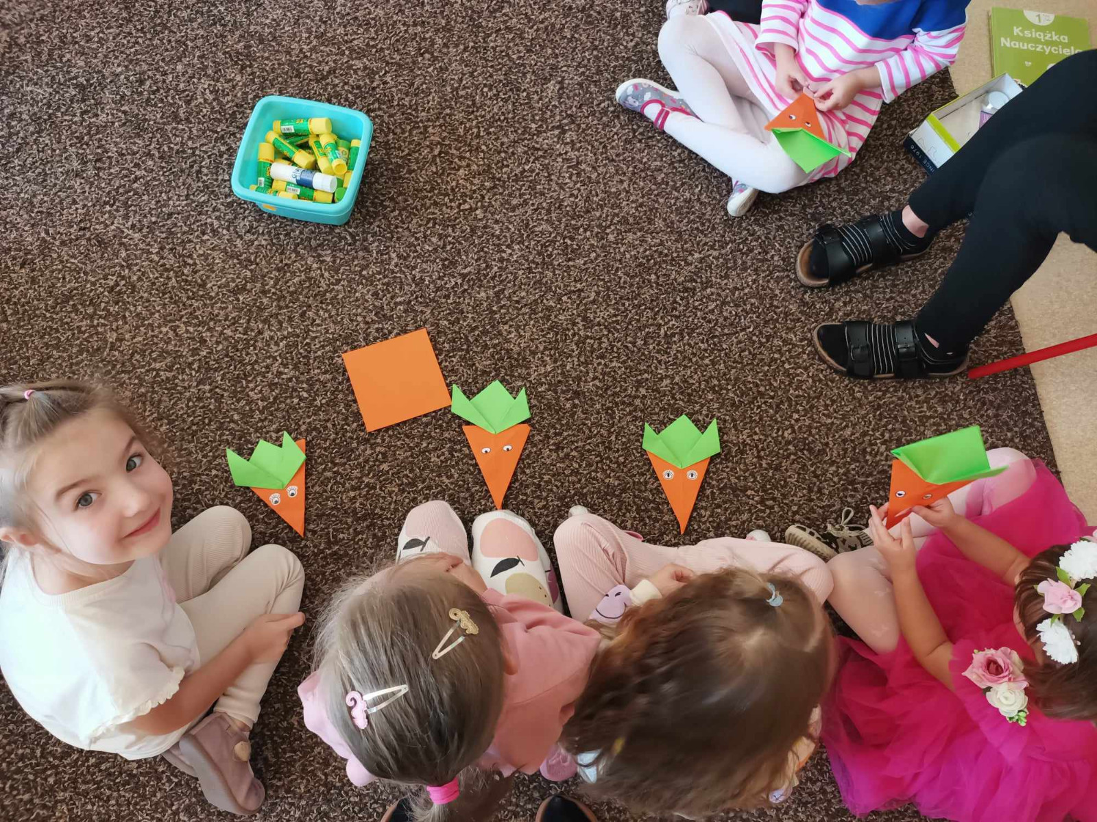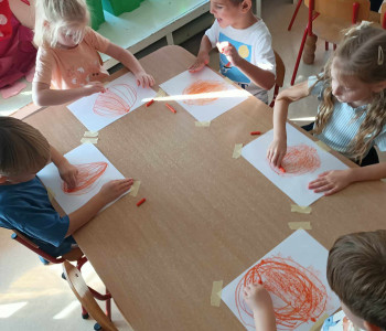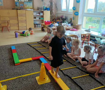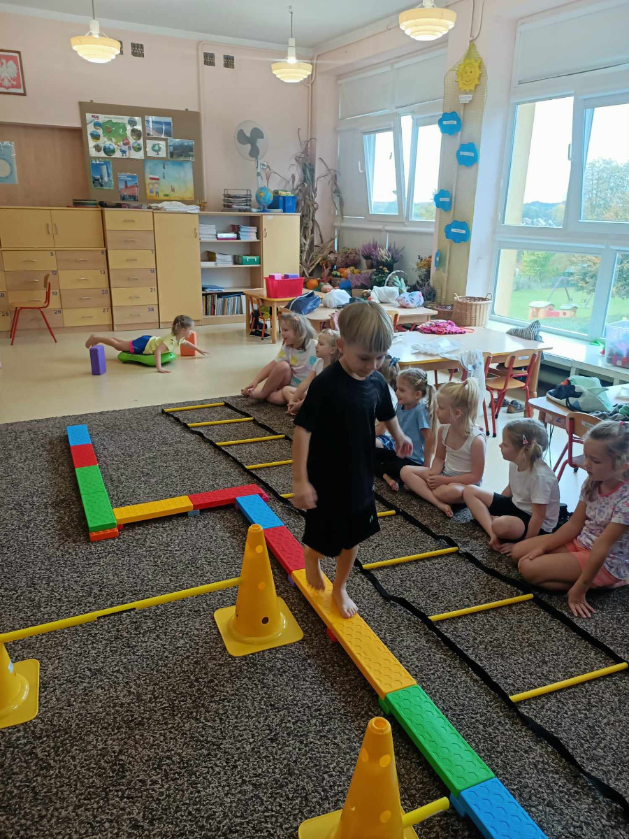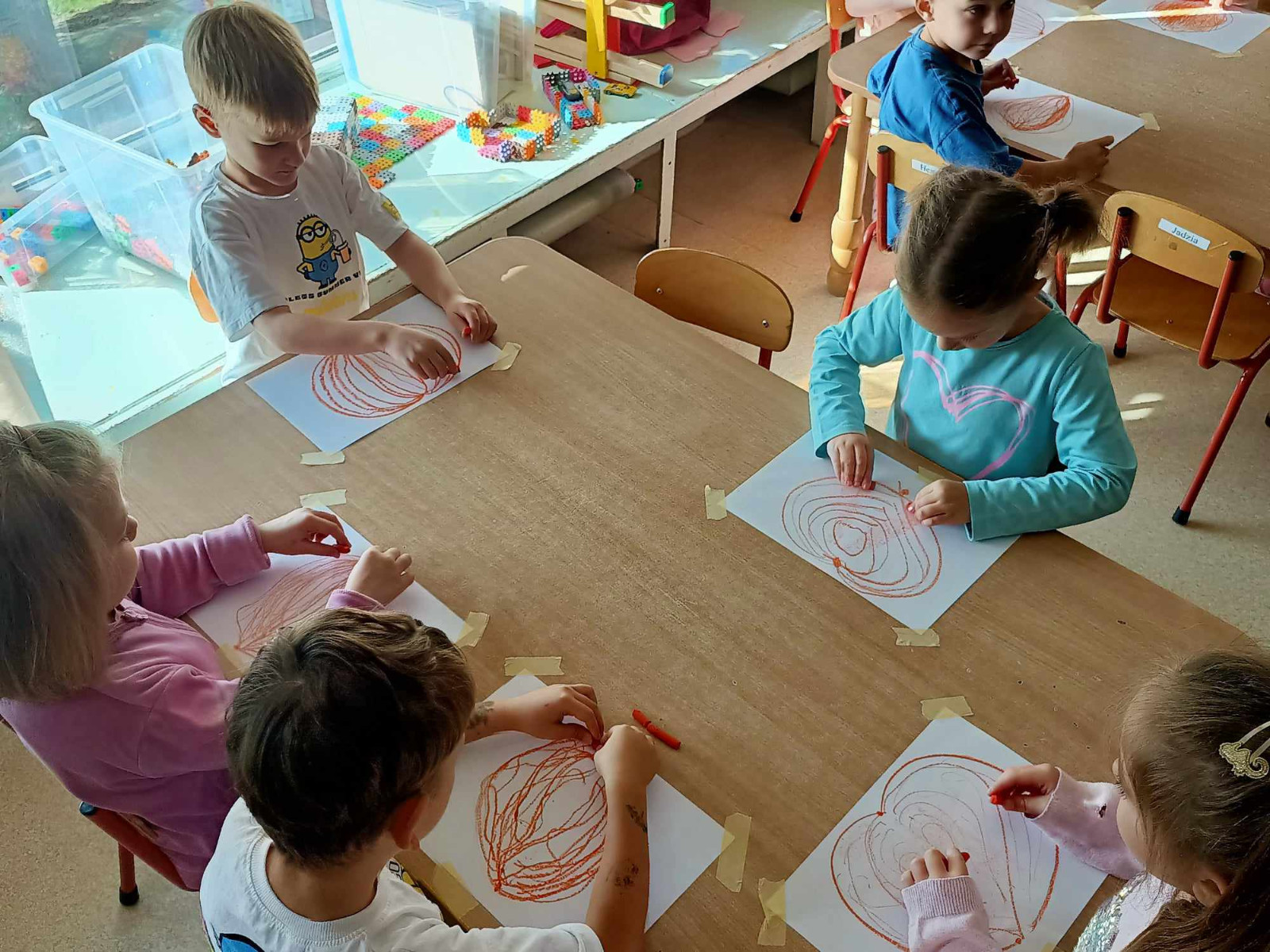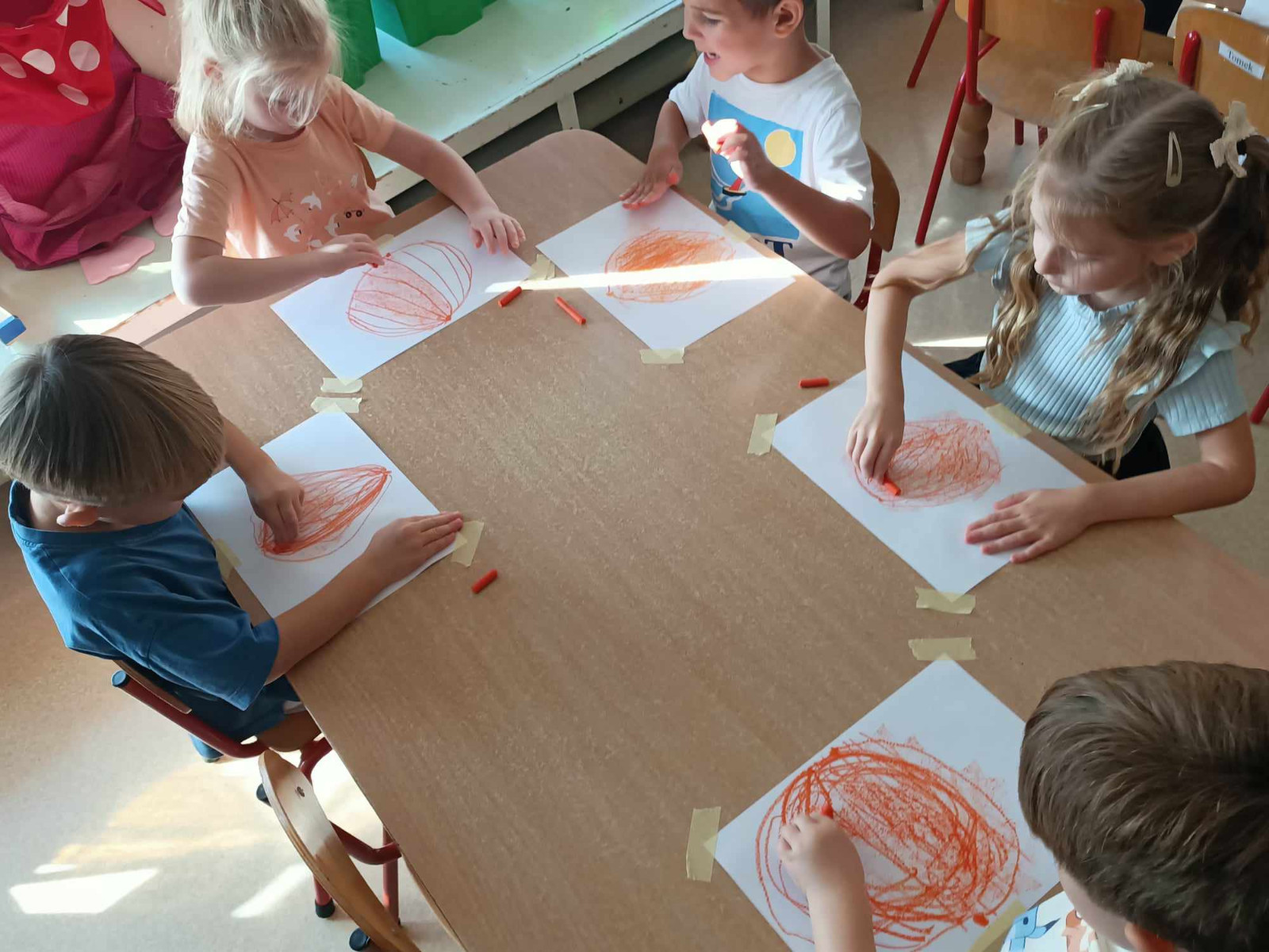 Ufoludki obejrzały prezentację wiersza „Na straganie” J. Brzechwy z ilustracjami. Poznały budowę warzyw, dzieliły na sylaby nazwy warzyw. Wykonały prace plastyczne - „Dynię” z elementami Edukacji przez ruch oraz marchewkę elementami origami , które można podziwiać na naszej plastycznej wystawce. Układaliśmy warzywne sudoku na dywanie. Dużo frajdy sprawiło dzieciom układanie kasztanowych wzorów na taśmie malarskiej. Na zakończenie tygodnia nie mogło zabraknąć ćwiczeń gimnastycznych z elementami sensoryki.