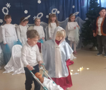 To było wspaniałe spotkanie wnuczek i wnuków ze swoimi kochanymi Babciami i Dziadkami. Jagódki pięknie wystąpiły dla nich, a oni w podziękowaniu im radośnie zaśpiewali piosenkę "Krakowiaczek". Atmosfera była cudowna.