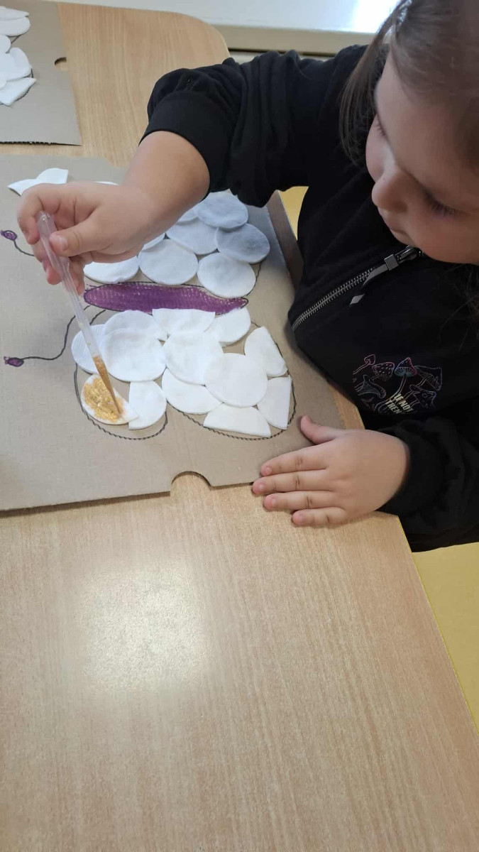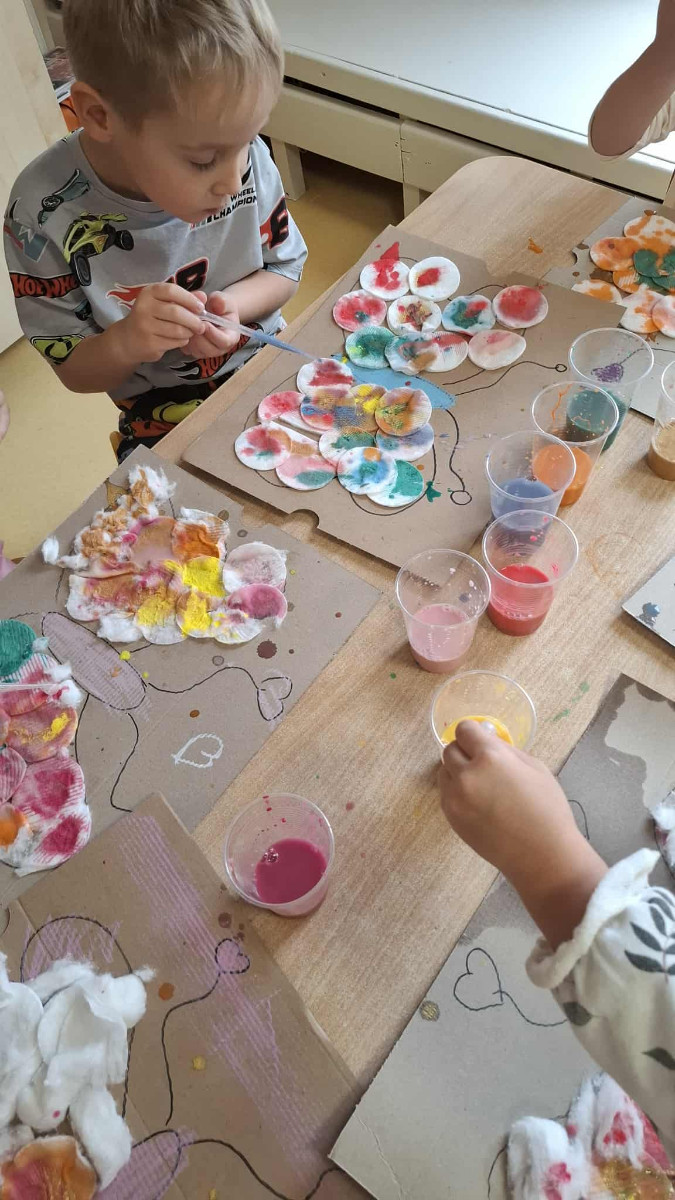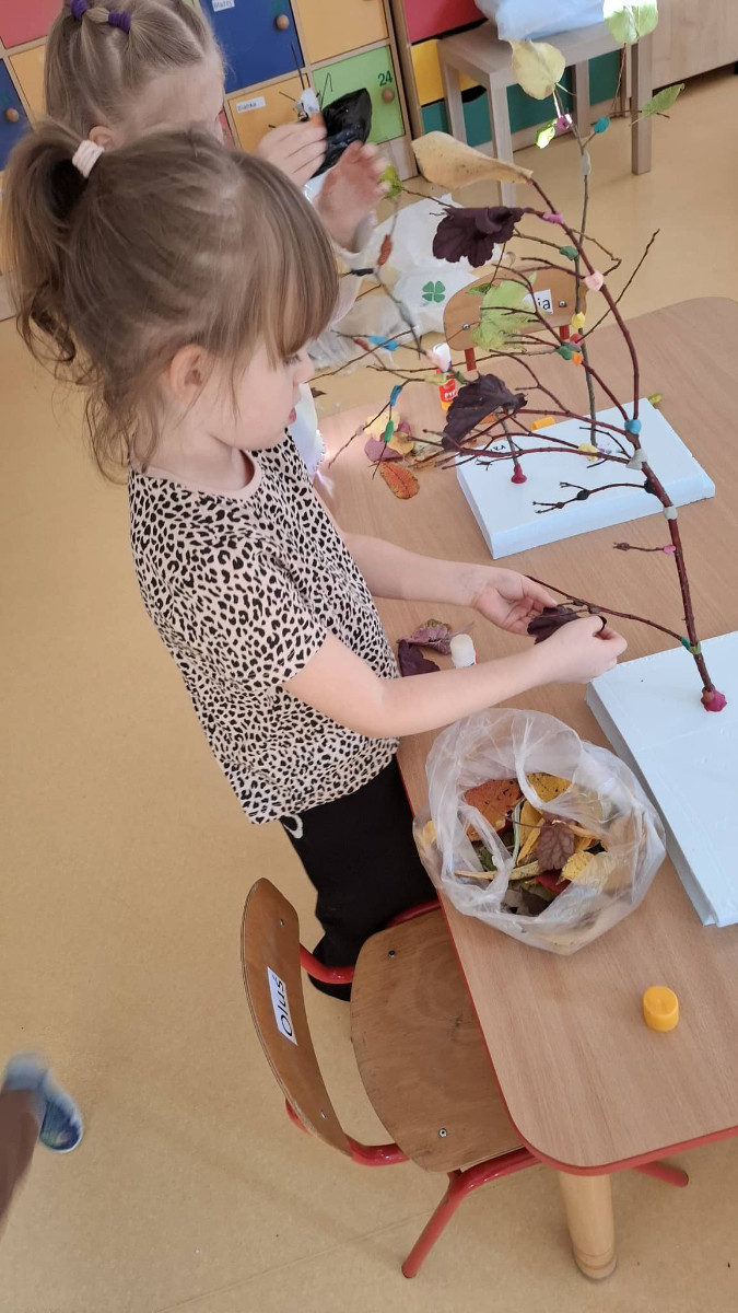 Listopad upłynął nam pod znakiem twórczej zabawy i kolorowych działań plastycznych. Choć za oknem coraz mniej barw, w przedszkolu panowała prawdziwa paleta kolorów! Dzieci stworzyły piękny, jesienny las z liści i gałęzi, rozwijając przy tym wyobraźnię oraz zdolności manualne. Dużo radości sprawiło im również tworzenie barwnych motyli z wykorzystaniem pipet – ta technika pozwoliła najmłodszym odkrywać, jak wspaniale łączą się kolory. W listopadzie powstały także przepiękne prace przedstawiające sowy, wykonane metodą Edukacji Przez Ruch, które zachwyciły swoją dokładnością i pomysłowością. To był miesiąc pełen kreatywności, zabawy i odkrywania nowych sposobów wyrażania siebie poprzez sztukę. Już nie możemy się doczekać kolejnych twórczych wyzwań!