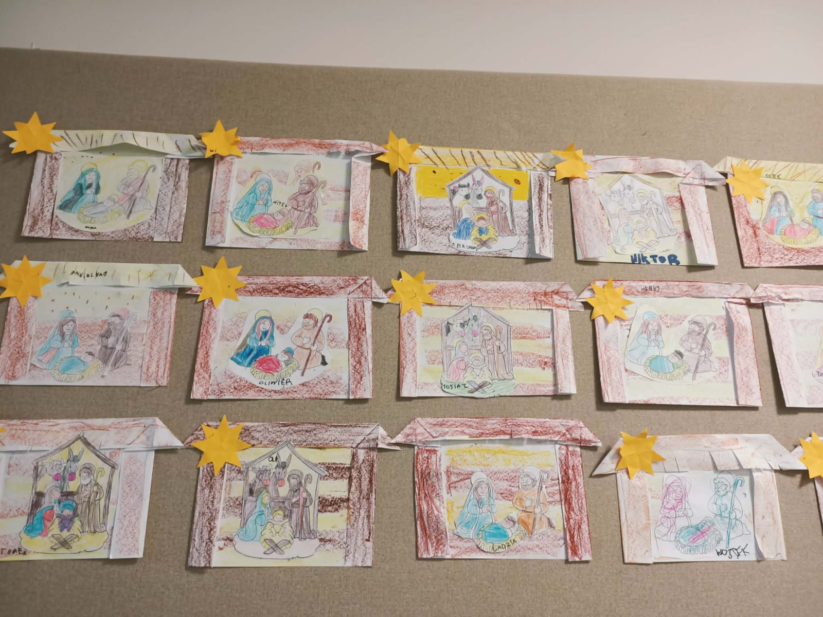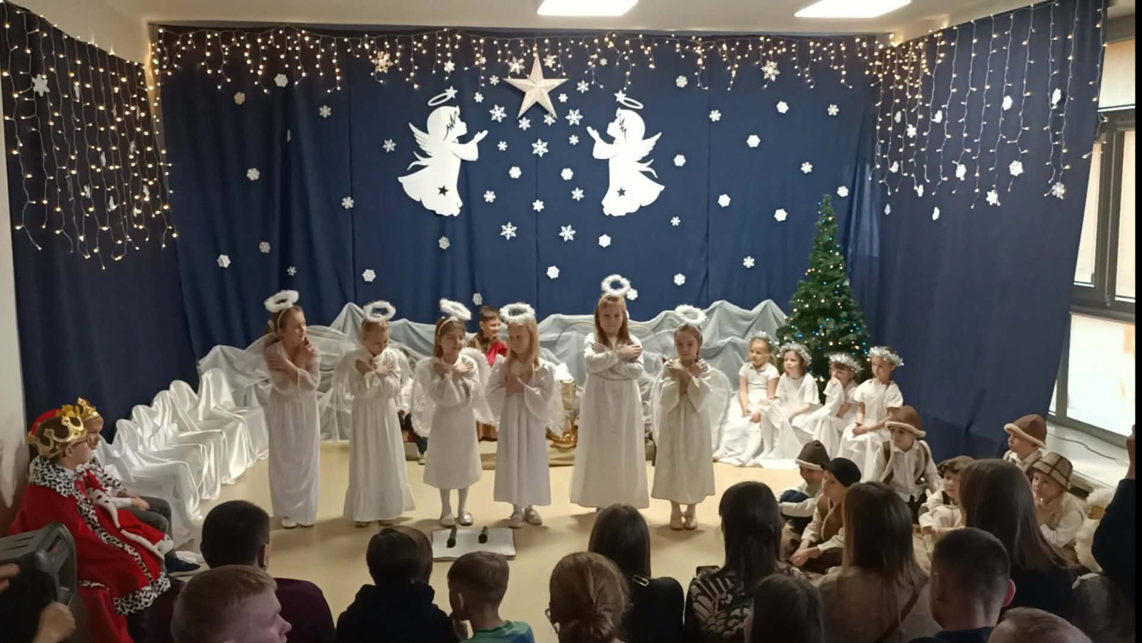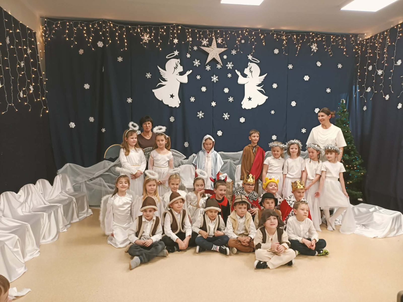 W okresie świątecznym w naszej społeczności nie mogło zabraknąć wyjątkowych wydarzeń, które wprowadziły wszystkich w bożonarodzeniowy nastrój. Jednym z nich był występ Plastelinek podczas jasełek, który spotkał się z ogromnym entuzjazmem i ciepłym przyjęciem ze strony publiczności. Plastelinaki zaprezentowały się z wielkim zaangażowaniem, radością i odwagą sceniczną. Mali artyści z dumą wcielili się w swoje role, tworząc barwną i wzruszającą opowieść o narodzinach Jezusa. Ich występ był nie tylko pięknym elementem jasełek, ale także dowodem na to, jak wiele można osiągnąć dzięki wspólnej pracy, wzajemnemu wsparciu i kreatywności. Oprócz udziału w jasełkach Plastelinaki wykonały również pracę plastyczną w ramach EPR pt. „Stajenka Betlejemska”. Dzieci z wielkim zaangażowaniem tworzyły swoje dzieło.