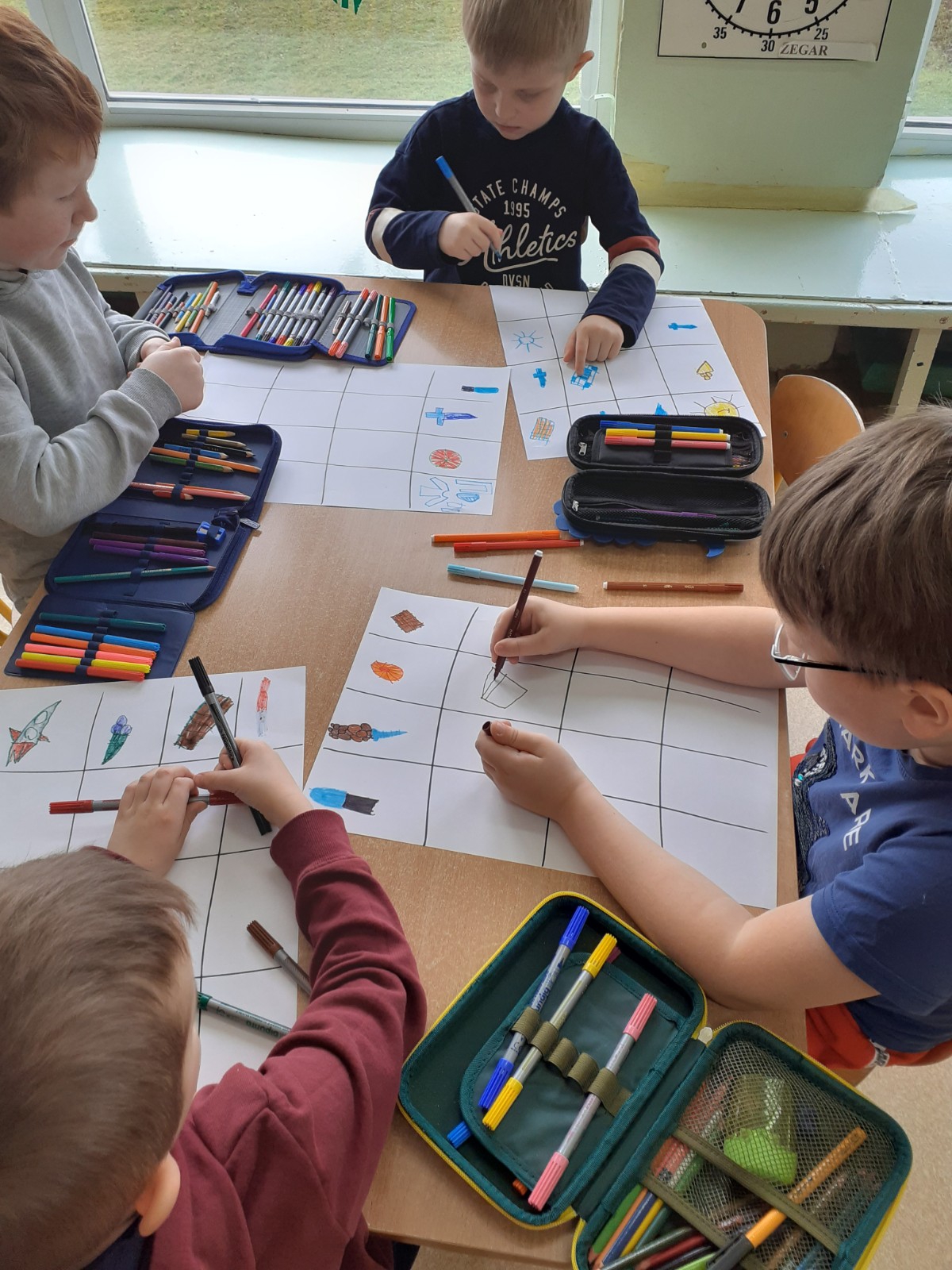 W miesiącu lutym rozpoczęliśmy realizację grantu matematycznego „Rosnę z matematyką gry i zabawy w leniwej ósemce” organizowanego przez Fundację mBanku we współpracy z Fundacją Dobra Sieć. Podczas zajęć dzieci kodowały symbole, bawiły i się tworzyły z figur geometrycznych, brały udział w grach i zabawach sportowych, doskonaliły orientację w schemacie ciała, przeliczały na materiale liczbowym, rozwiązując zadania z treścią, rysowały postać ludzką. Wykonywały prace plastyczne techniką origami oraz metodą „Edukacja przez ruch” między innymi wykorzystując leniwą ósemke między innymi do wykonania pracy lastycznej z okazji Dnia Kota.