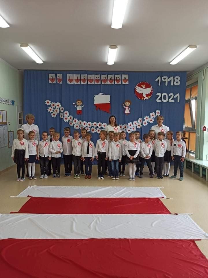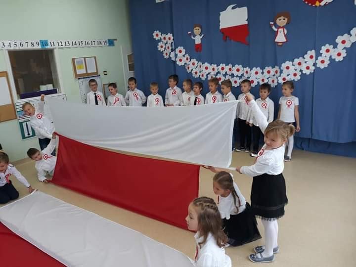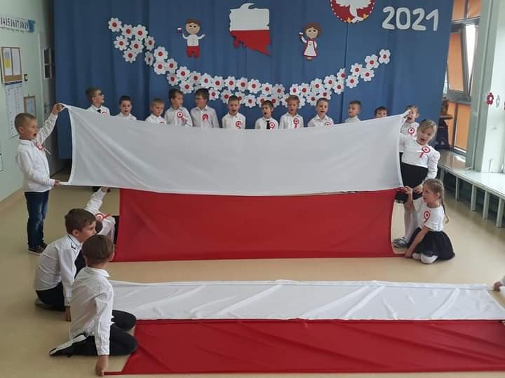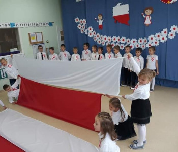 Grupa Plastelinki wystąpiła z krótkim montażem słowno – muzycznym. Podczas występu dzieci recytowały wiersze patriotyczne, śpiewały piosenki. Nie zabrakło tańca i zabawy przy piosence „Jestem Polką i Polakiem”. Dumnie, przyjmując właściwą postawę „na baczność”, odśpiewały hymn Polski „Mazurek Dąbrowskiego”. Głównym celem spotkania było kształtowanie miłości i przywiązania do kraju ojczystego, jego kultury i tradycji oraz poznanie symboli narodowych naszego kraju. Dzięki udziałowi w tego typu uroczystościach przedszkolaki od najmłodszych lat uczą się patriotyzmu, kształtują pozytywne postawy i uczucia patriotyczne.