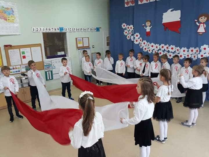 9 listopada 2021r. obchodziliśmy w naszym przedszkolu Święto Niepodległości. Z tej okazji wszystkie dzieci przyszły ubrane na galowo i uroczyście świętowali ten wyjątkowy dla Nas – Polaków dzień. Dzieci wykonały na tę uroczystość kotyliony w barwach ojczystych .